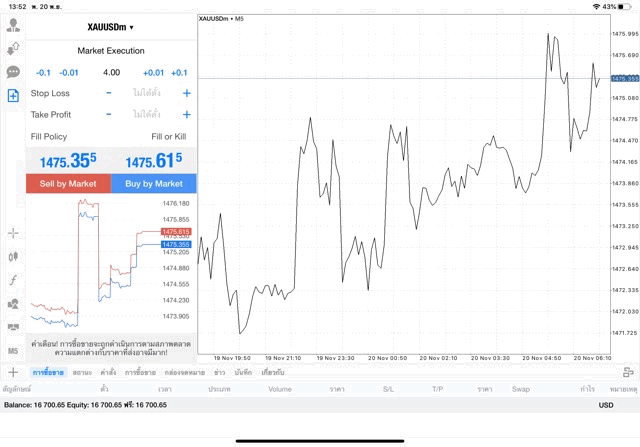 แอพ MT5 Mini Exness 4.00 lot ทองคำ