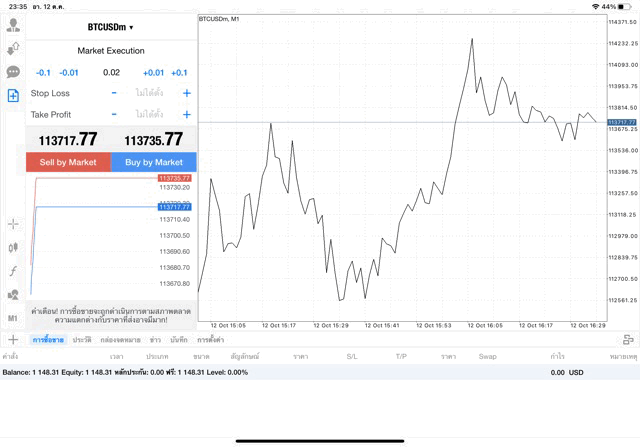 การเทรดเงินดิจิตอลบิทคอยน์บนแอปเล่นหุ้น MT4 หรือ Meta Trader 4